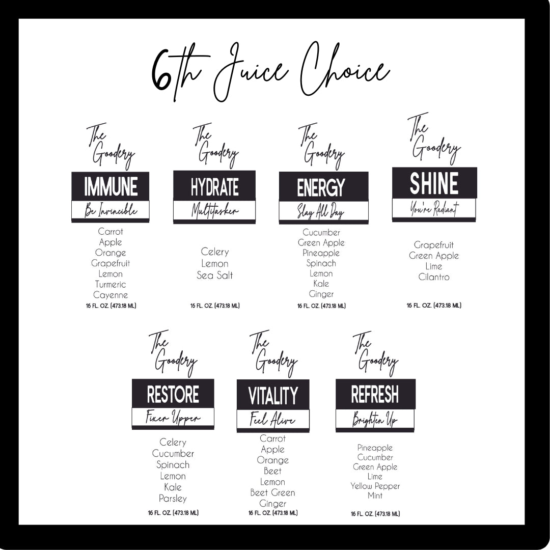 YOUR CHOICE (6): Choose a duplicate of any listed above, or sub in IMMUNE JUICE OR SHINE JUICE